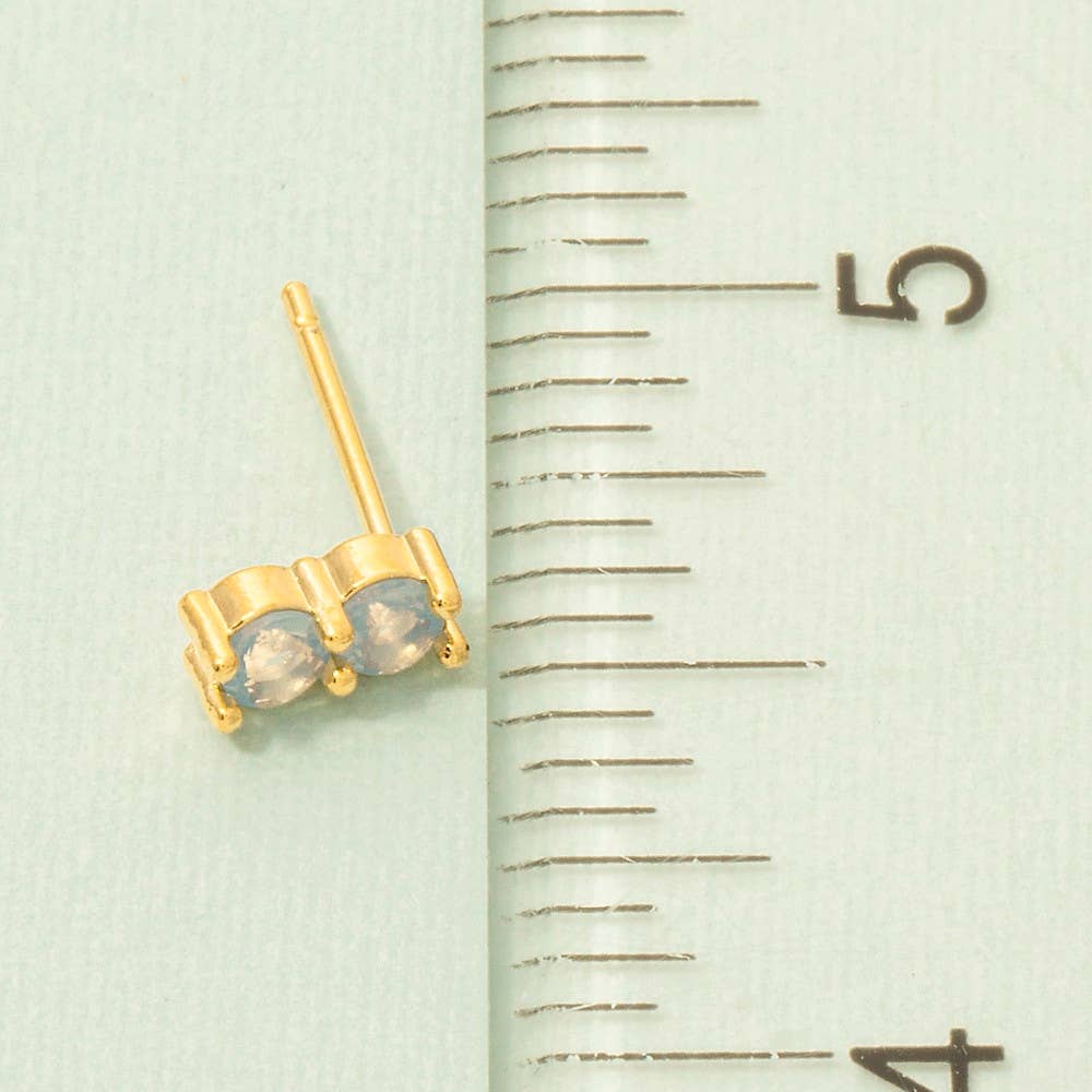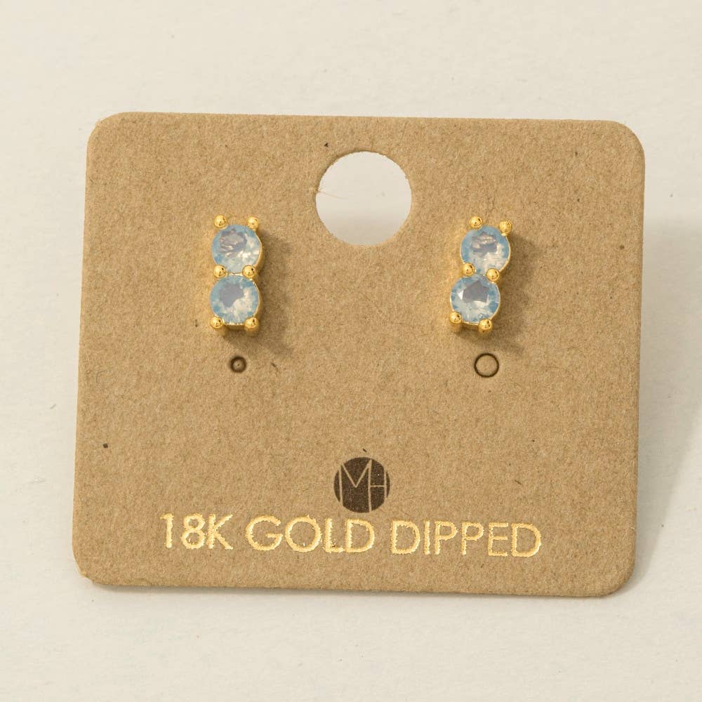 Gold Dipped Double Cz Link Stud Earrings: PK