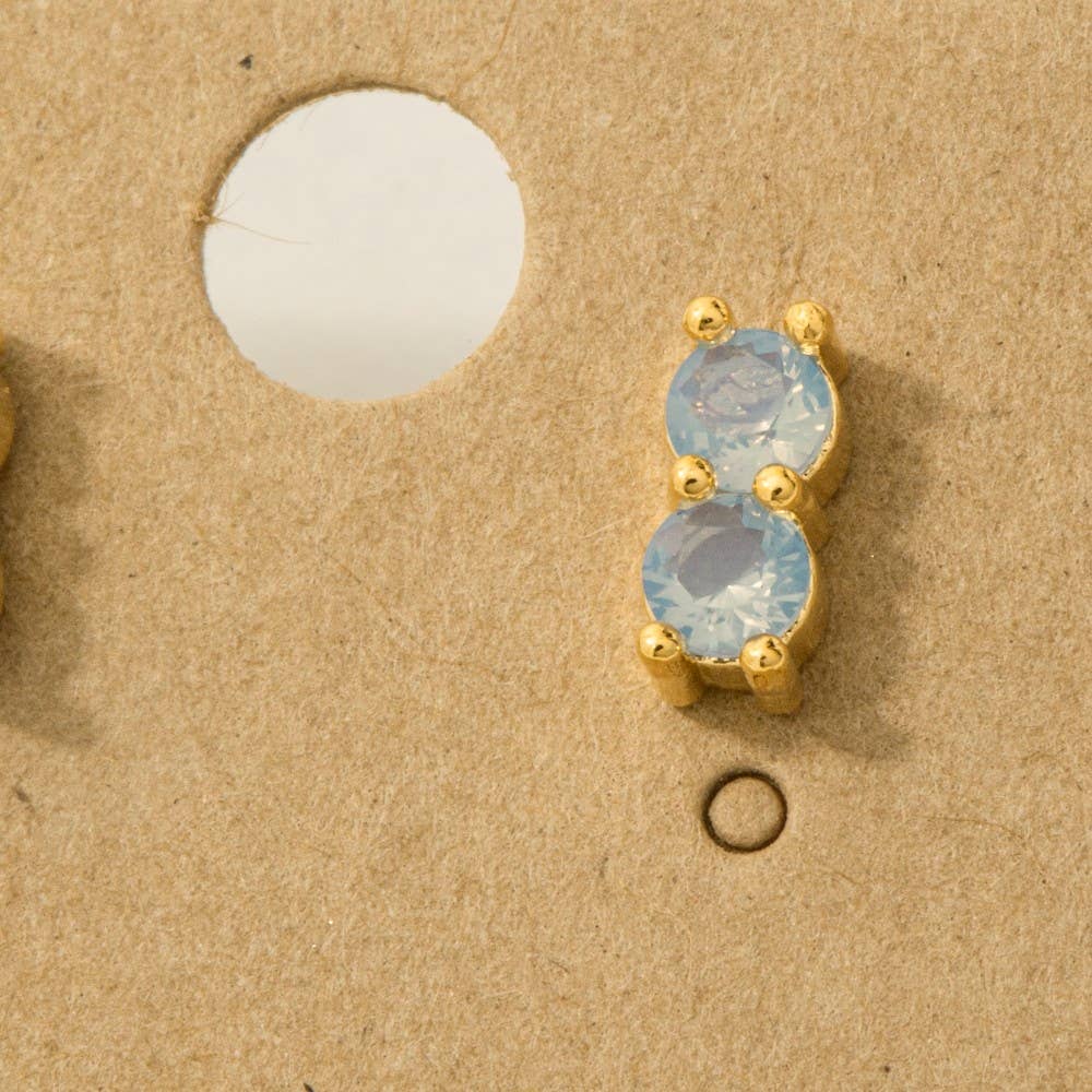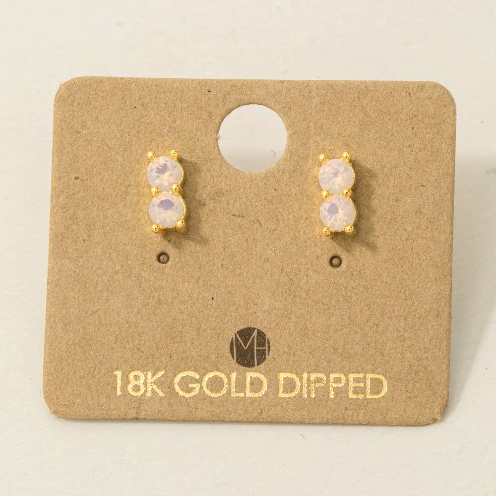 Gold Dipped Double Cz Link Stud Earrings: WH