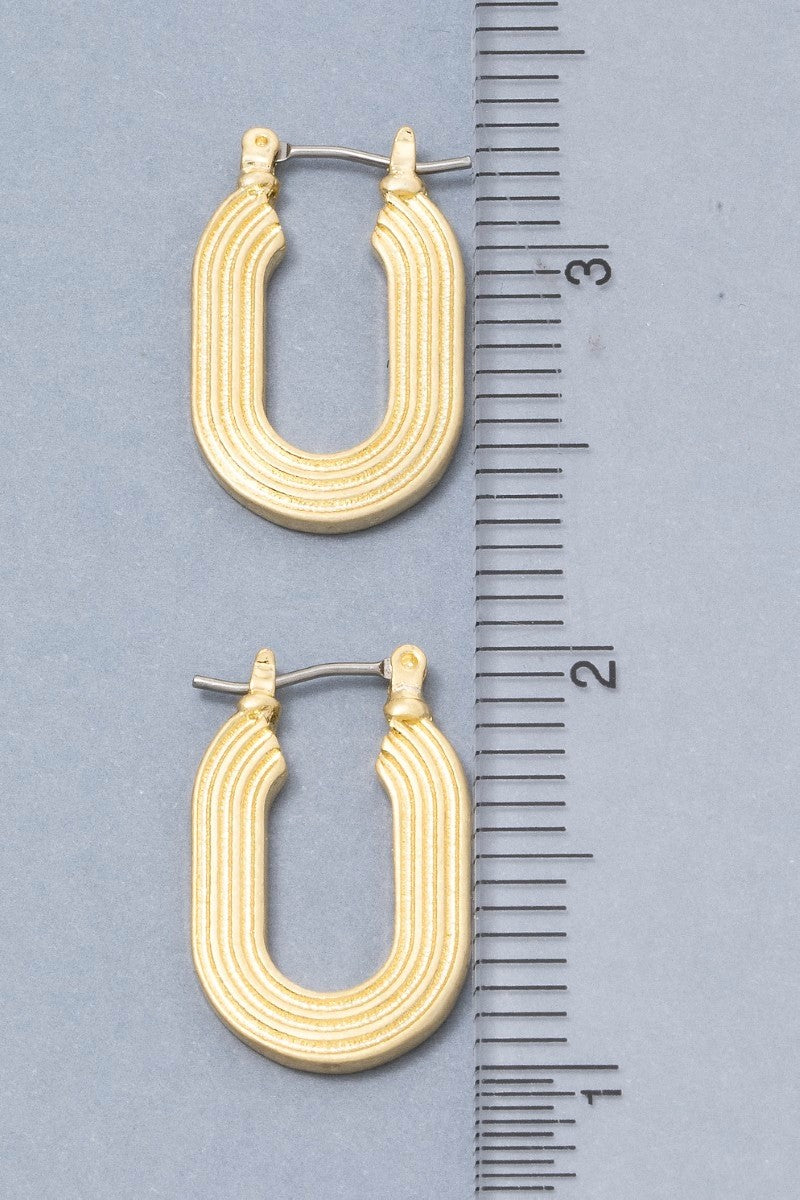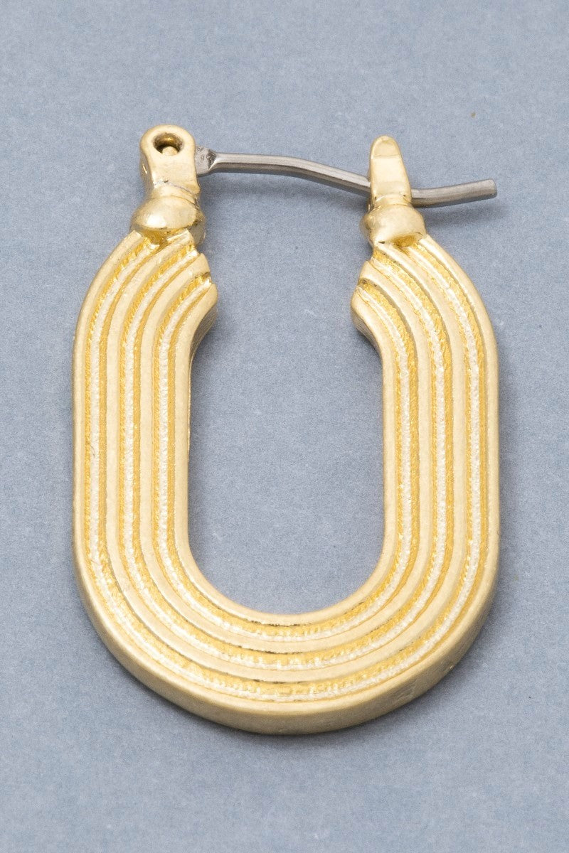 These gold dipped flat grooved oval hoop earrings blend classic shape with modern texture. The subtle grooved detailing adds interest while keeping the look timeless and wearable. Crafted from a brass blend, this pair is an effortless go-to for dressing up or down.