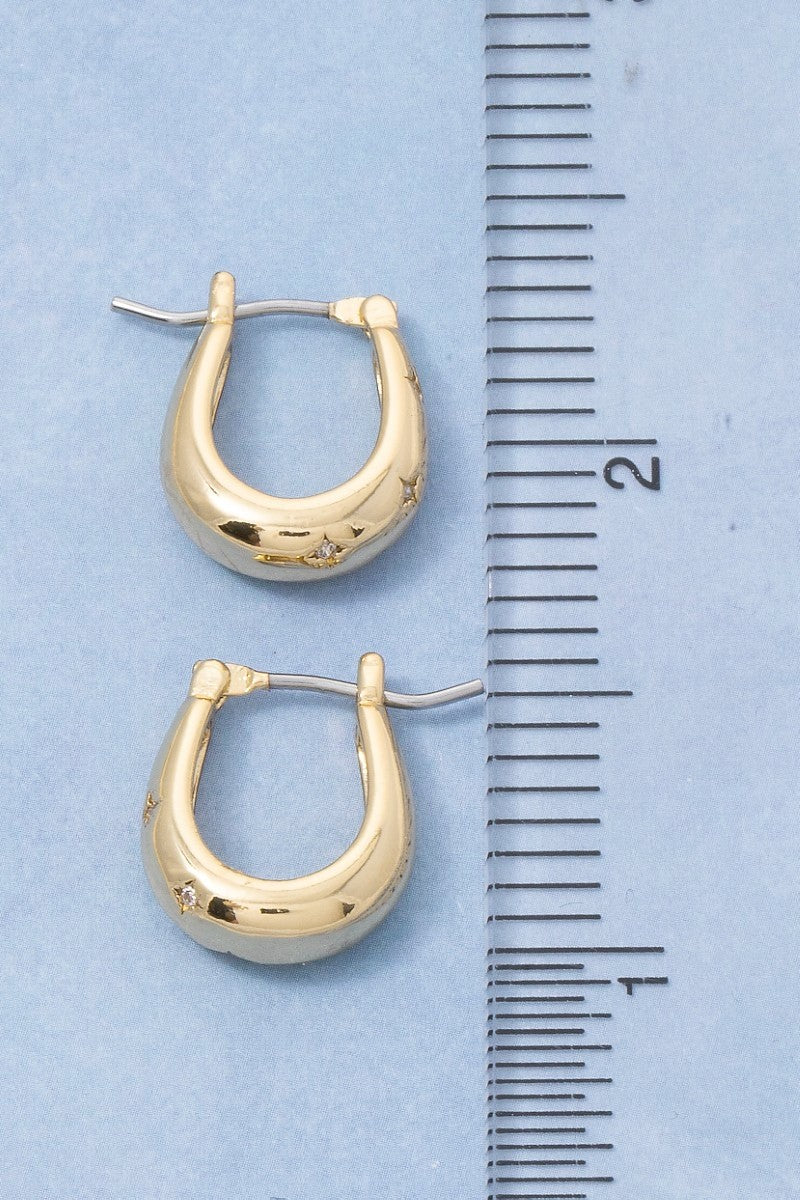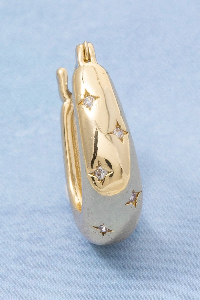 These gold dipped hoop earrings feature a sleek oval latch style accented with subtle star studs for a hint of shine. Easy to wear yet eye-catching, they strike the perfect balance between understated and statement-making, effortlessly finishing off both casual and dressed-up looks. Crafted from a brass and stainless steel blend, they’re a go-to pair you’ll reach for again and again.