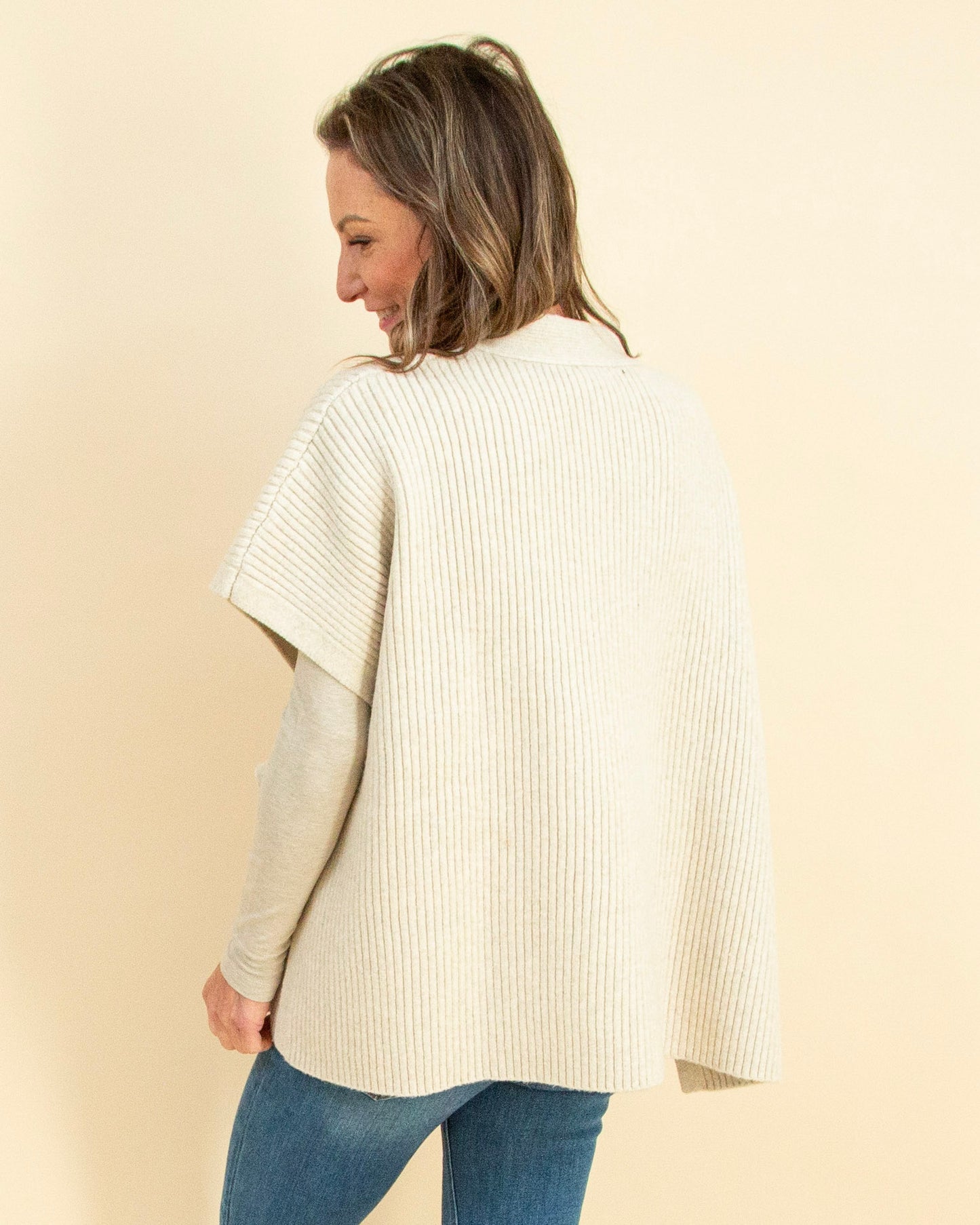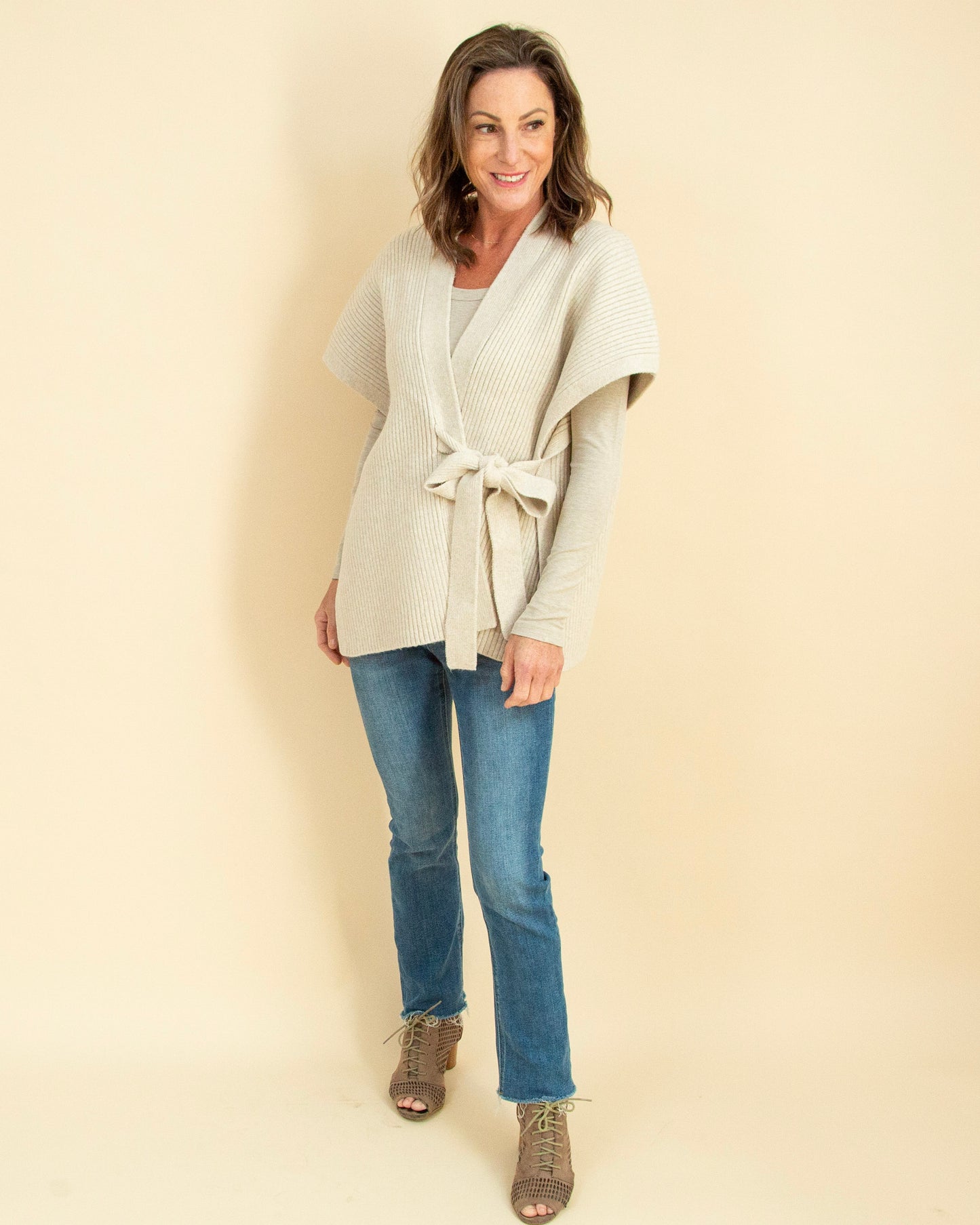 The Layering on Charm Cardigan in Cream brings effortless sophistication to every outfit. Crafted from a luxe ribbed knit, this sleeveless wrap cardigan drapes beautifully and ties at the waist for a flattering, customizable fit. The creamy neutral tone makes it endlessly versatile—perfect for layering over blouses, turtlenecks, or fitted long sleeves when you want that extra touch of polish without the bulk. Style it with tailored pants for work, over a fitted dress for dinner, or with denim and boots for a cozy weekend look. Find your favorite way to layer—shop it now in store and online.