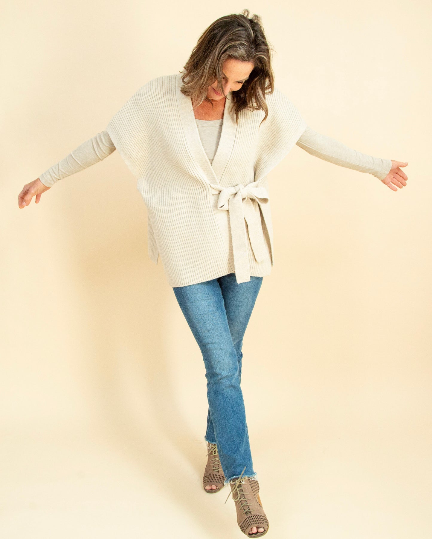 Layering on Charm Cardigan in Cream