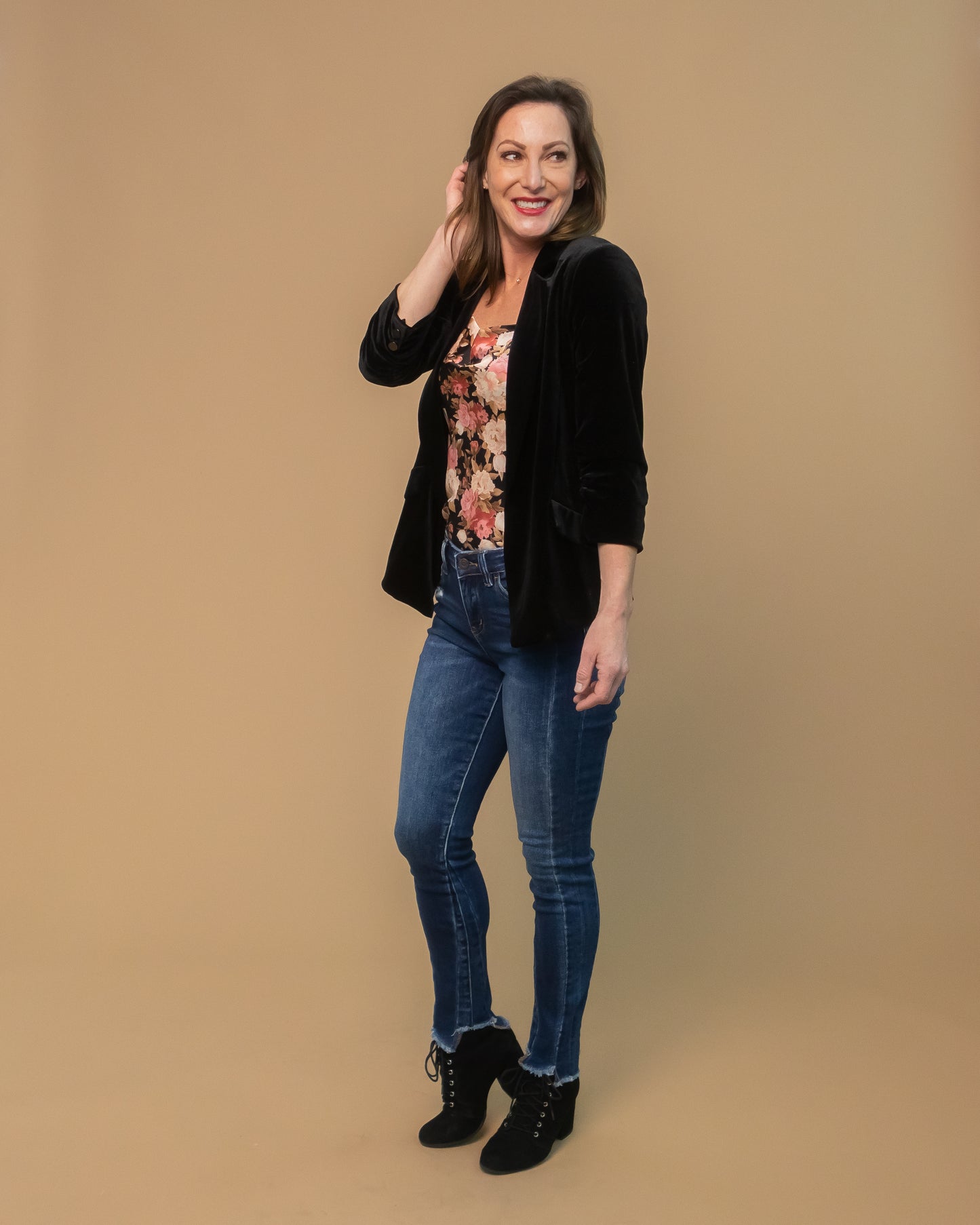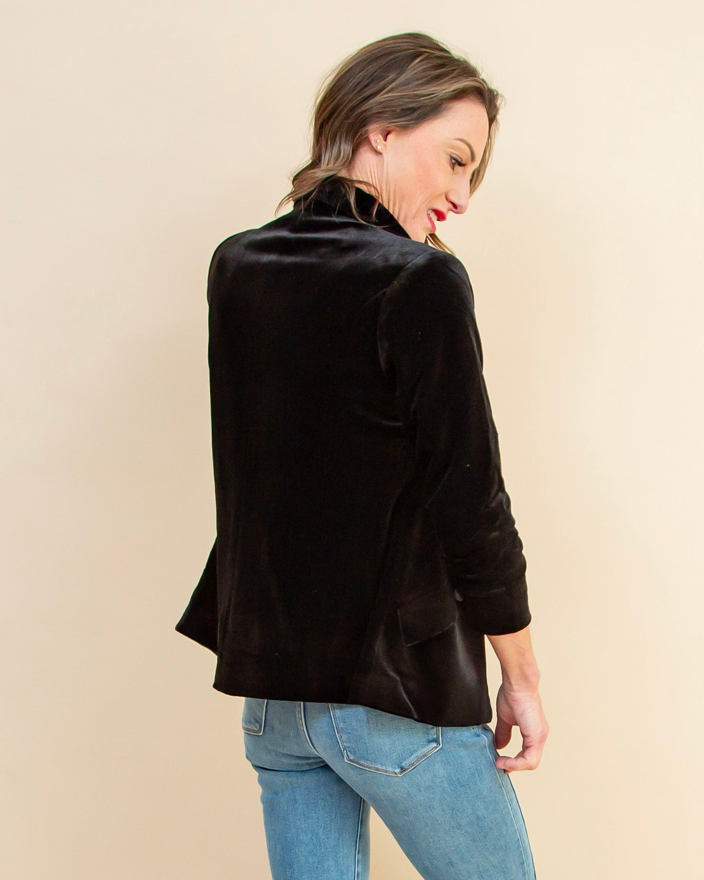 Shake up your wardrobe with this amazingly gorgeous and insanely flattering black velvet blazer! Plush velvet makes for a luxe look (and feel) on this open-front blazer with ruched sleeves. Slip it on with a satin cami for date nights or dressed-up dinners with friends. It is such a fun and unique piece that adds a little something special to your look.