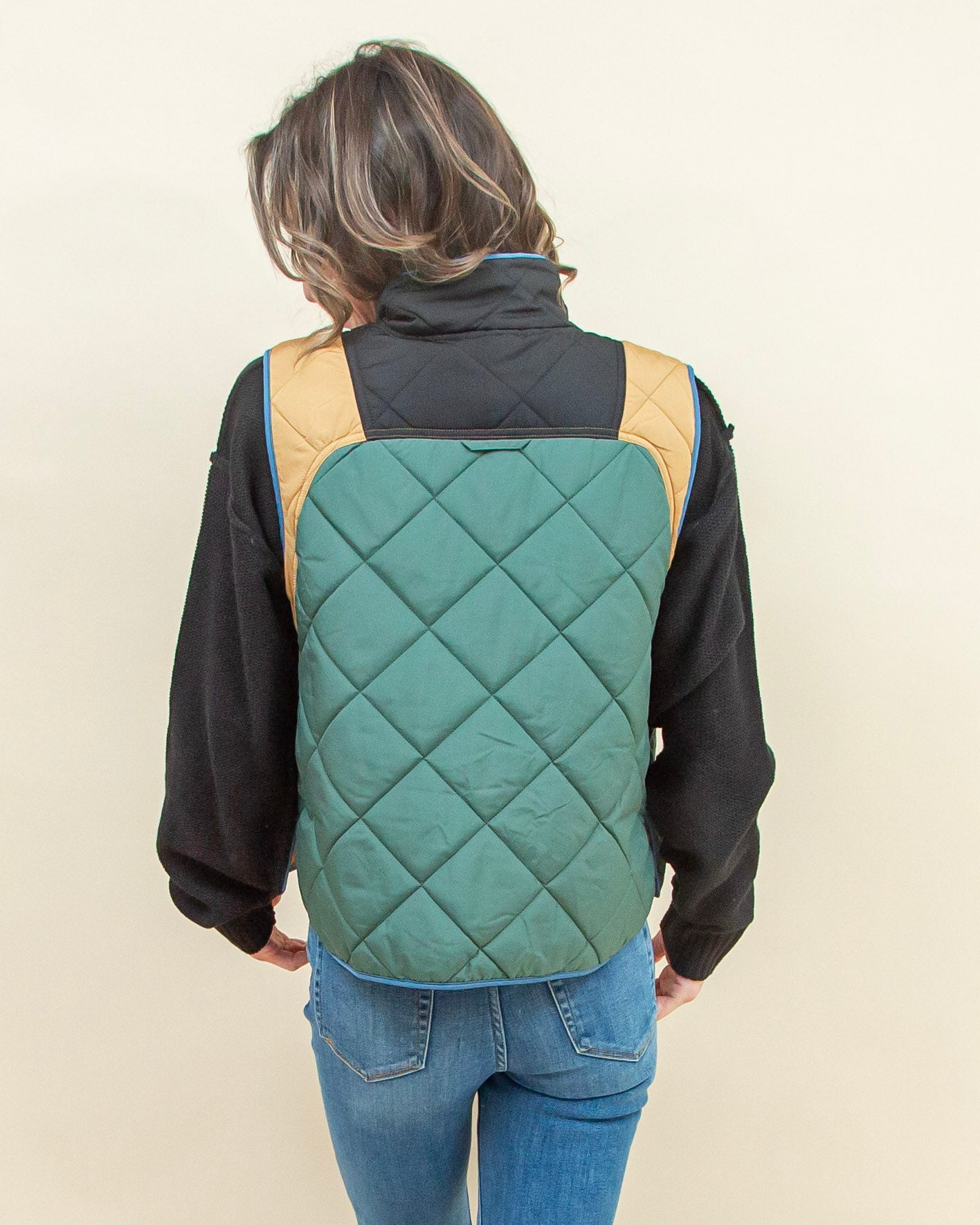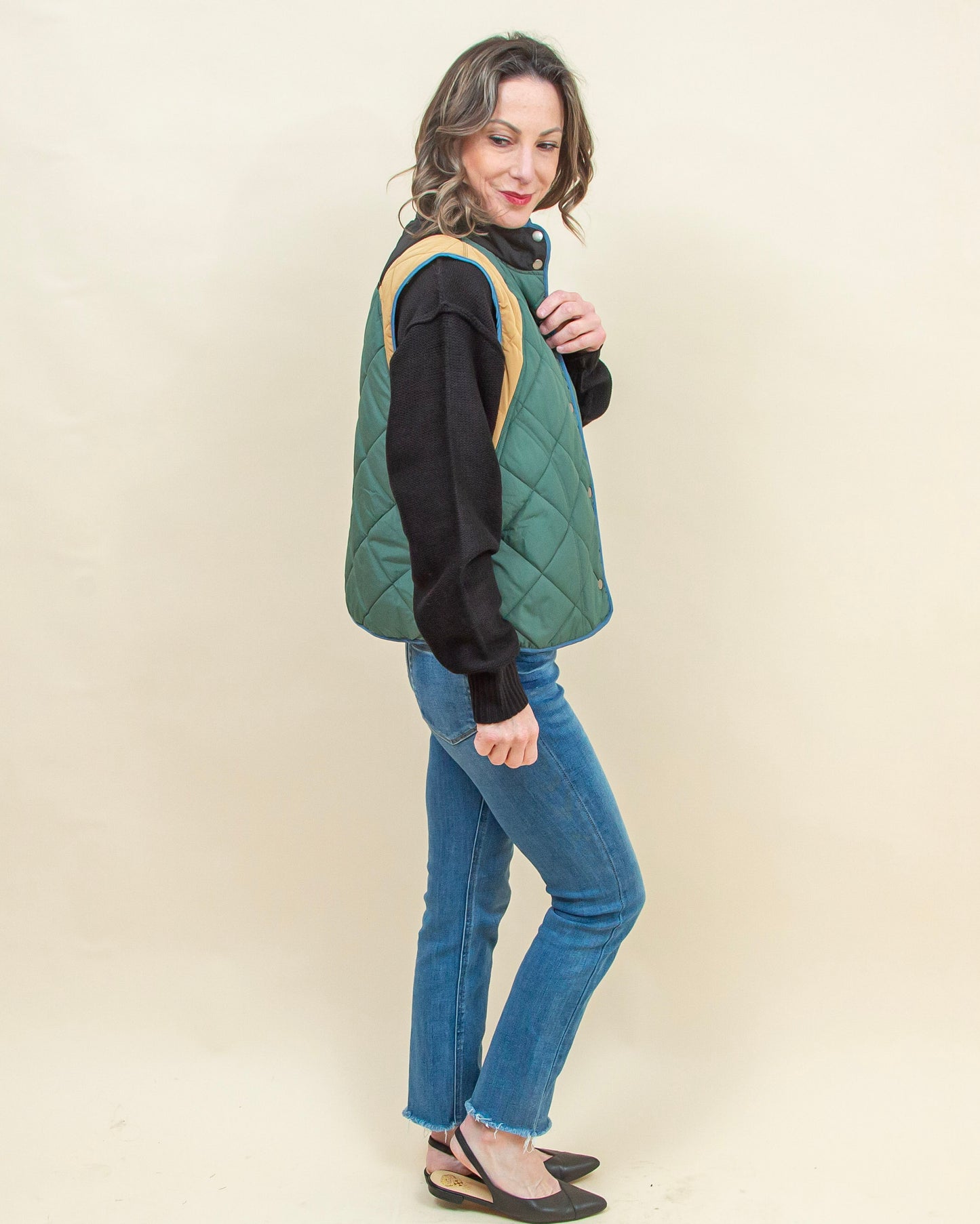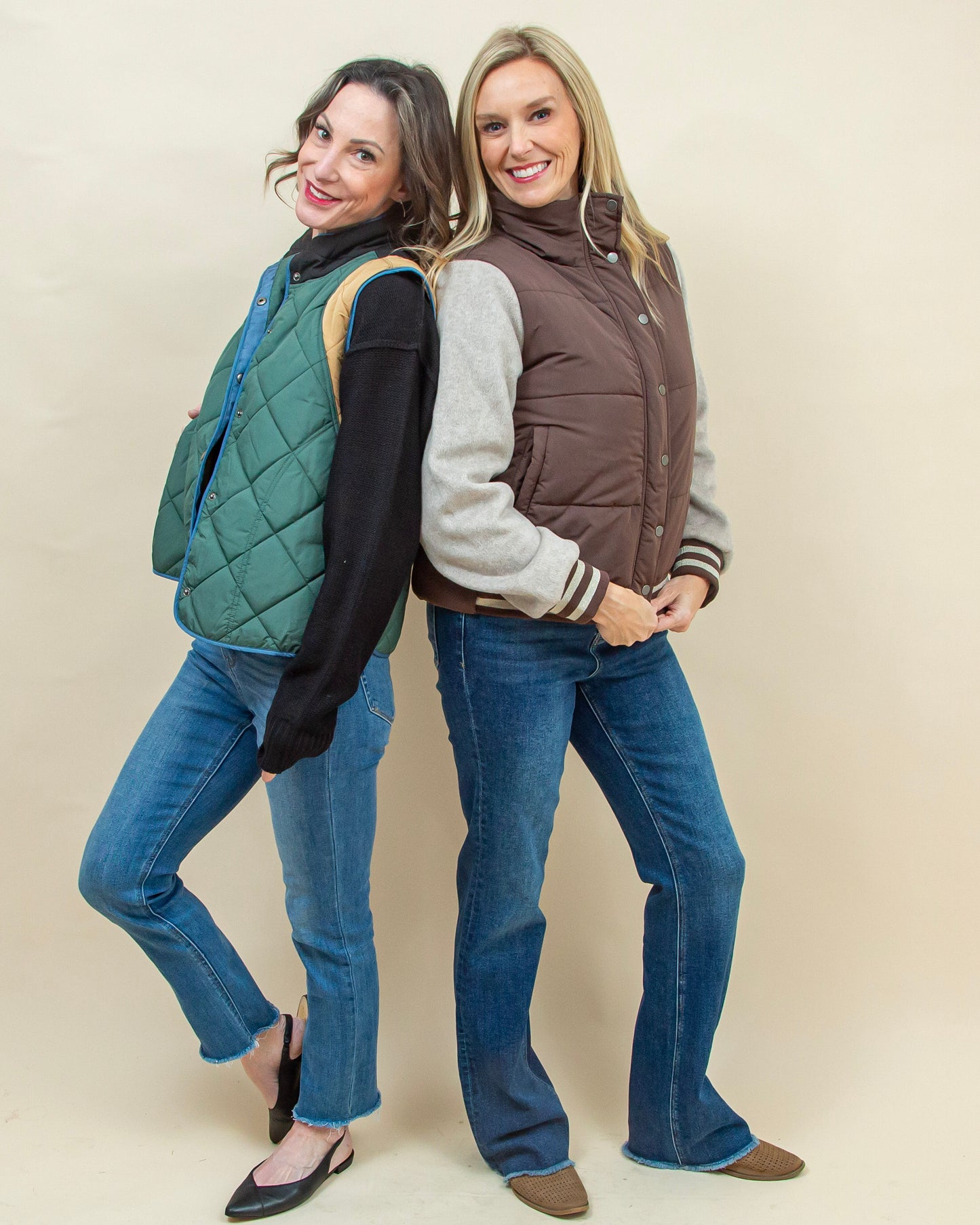 The Adventure Bound Vest in Green Mix is the perfect lightweight layer for chilly days when you want warmth without the bulk. Designed with a color-block padded look, this vest features snap buttons down the front, an easy hi-lo hem, and functional side pockets for everyday wear. The mix of textures and tones gives it an outdoorsy, casual feel that’s still easy to style. Layer it over sweaters, knits, or hoodies for walks, errands, or weekend plans—it’s an effortless grab-and-go piece you’ll wear all season long.