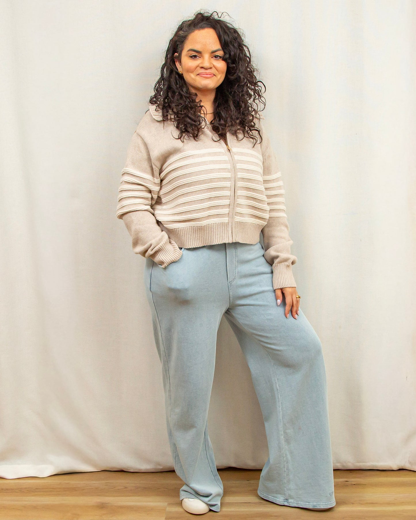The Kovac Sweater Jacket in Natural Heather by Z Supply is a polished layering piece that blends comfort and structure effortlessly. Crafted from Z Supply’s signature Sienna Yarns in 100% cotton, this midweight sweater jacket features a zip front, classic stripe detailing, and an oversized collar that adds a refined, elevated touch. The regular fit and heavy soft wash give it a cozy yet put-together feel, making it easy to pair with light denim, trousers, or everyday basics for a look that transitions seamlessly from casual days to more styled moments.