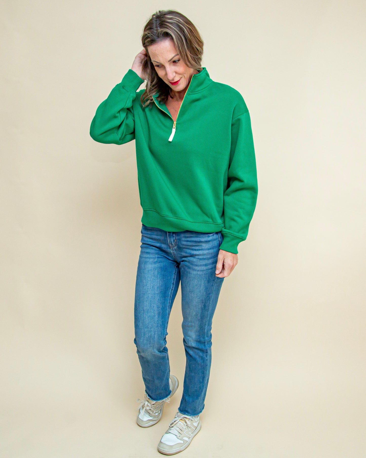 Forever Favorite Fleece Half Zip in Kelly Green (9108255375611)