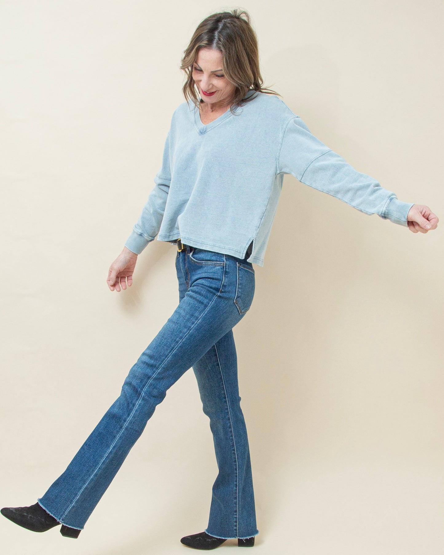Soft knit denim gives the Delphine Knit Denim Sweatshirt by Z Supply in Ocean Air Indigo its effortlessly laid-back appeal. Designed with a relaxed fit and lightweight feel, this v-neck sweatshirt features subtle ribbed details and a mineral wash finish for that perfectly lived-in look that only gets better with wear, making it an easy everyday essential that pairs with everything.