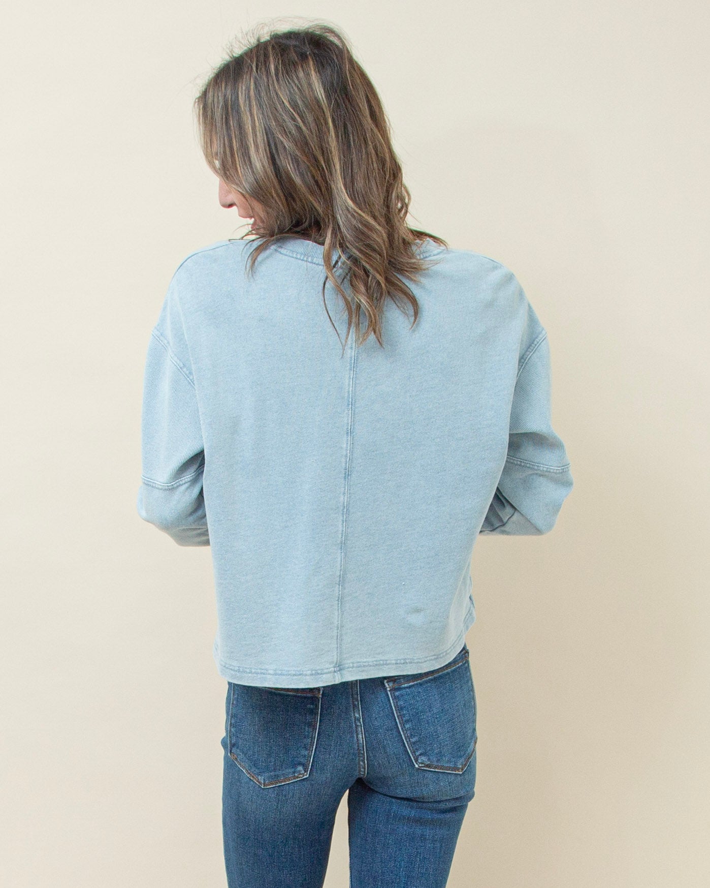 Delphine Knit Denim Sweatshirt in Ocean Air Indigo