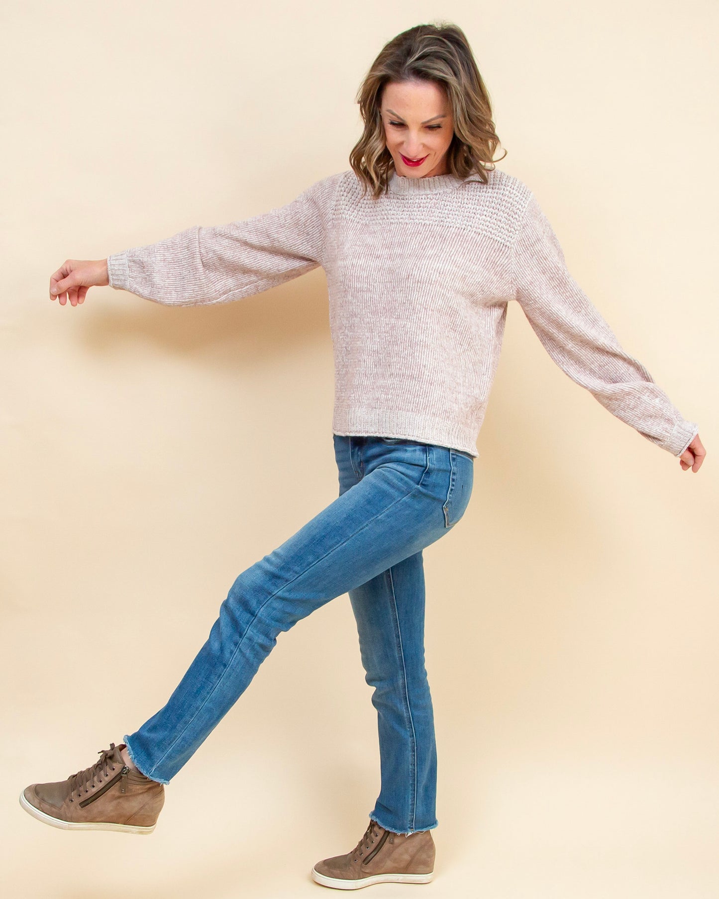 The More Than Cozy Sweater in Mauve is the definition of soft and effortless. Crafted from melange yarn with a textured knit, this relaxed crewneck delivers that lived-in, snuggle-worthy feel you’ll reach for daily. The rolled hem and cuffs give it a laid-back finish, while the subtle volume sleeves add a touch of shape and style. Easy to wear and endlessly comfortable, it’s the sweater that truly lives up to its name.
