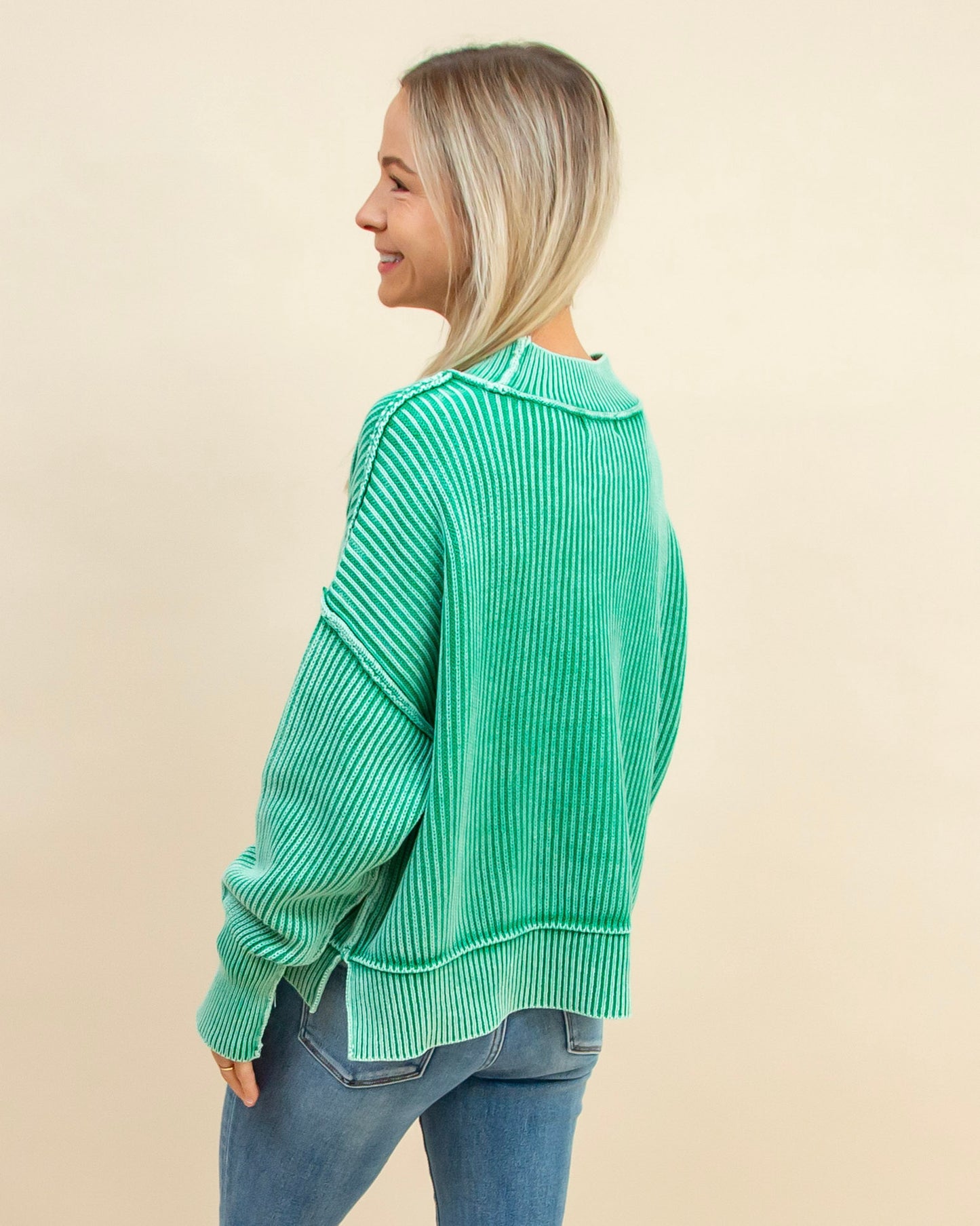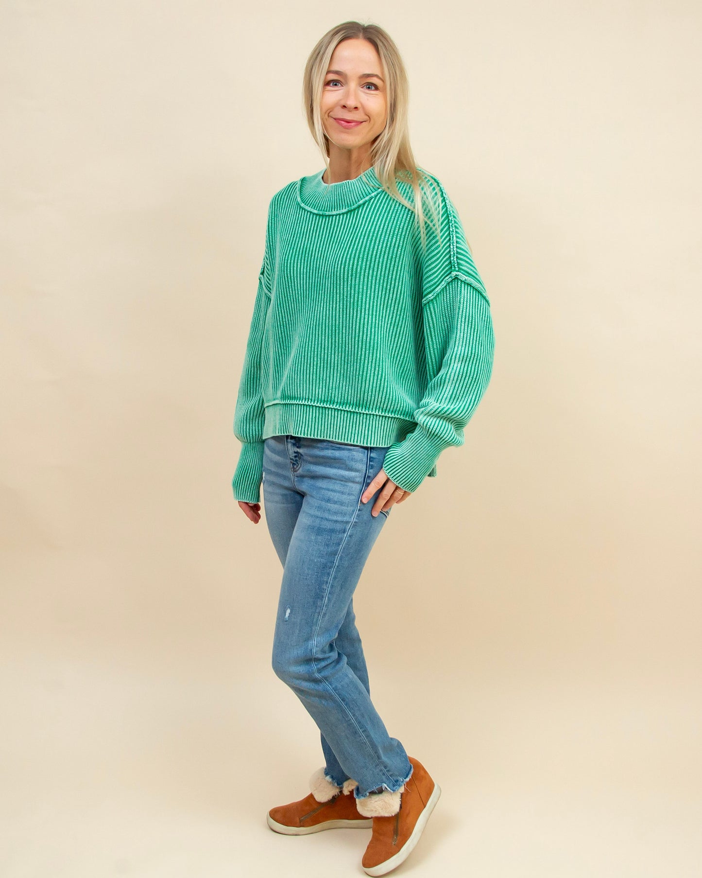 Meet the Everything's Easy Oversized Sweater in Kelly Green! Crafted from the best quality low gauge heavyweight knit, this washed, side-slit cropped sweater is all about effortless comfort and style. Its oversized fit and relaxed silhouette make it the perfect go-to piece for laid-back days while still keeping you chic and cozy.